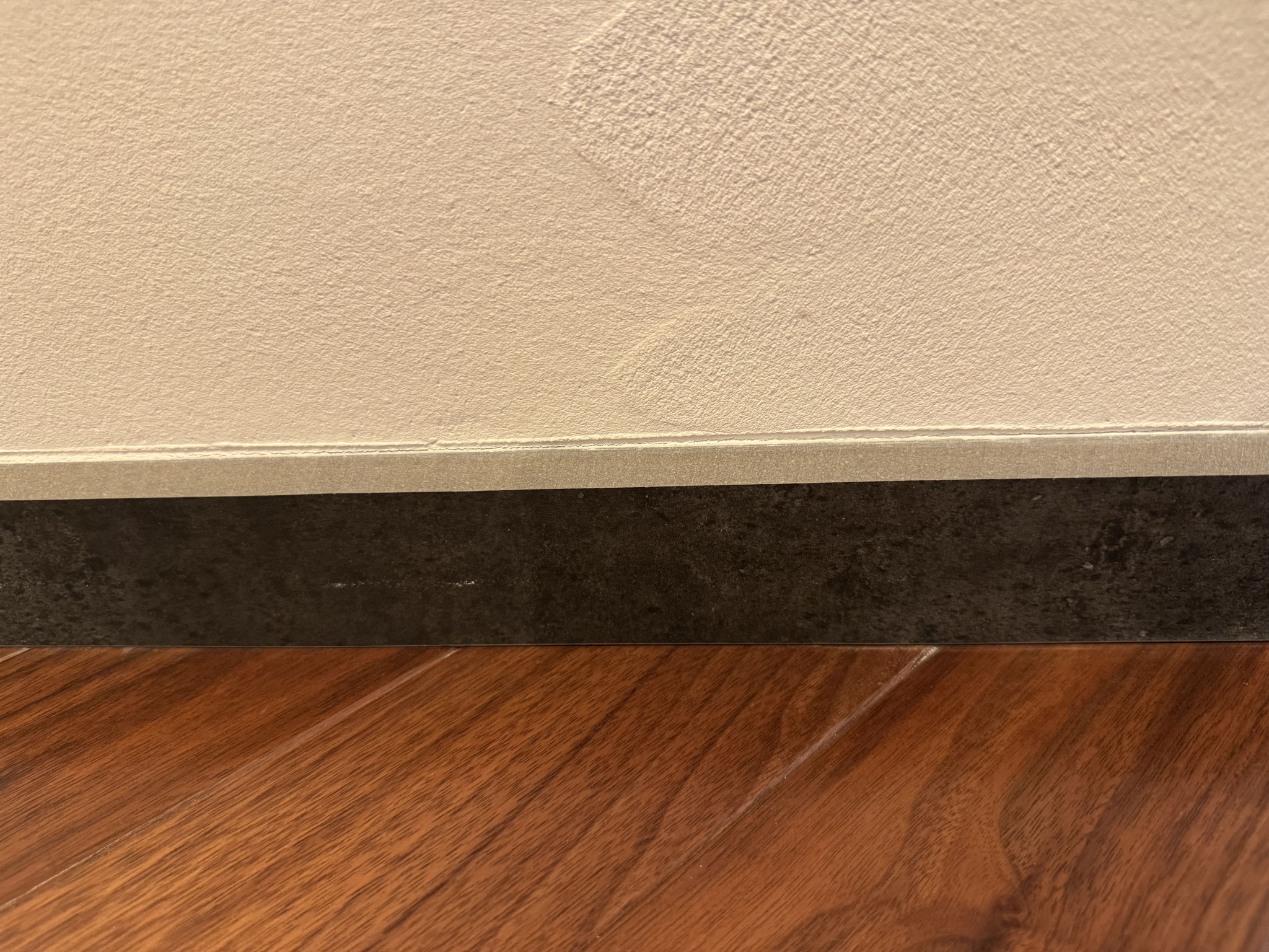 また、この基礎巾木を塗るという事例があまり無く、基礎巾木から空気が出て、上手くいかないかもしれないという懸念がありましたが、弊社は意匠性の向上を目指し材料としてジョリパットを採用し、チャレンジを試みました。3年が経過し、今のところ何の問題も起きておりません。意匠性にこだわるなら、オススメいたします。