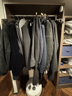 ・あこがれのパンツラックスタイルといっても良いのではないでしょうか。かっこいい、が全てです。正直、ハンガーで、吊るしておく方が、使い勝手良いです。ただ、ここは魅せる重視ですので。頻繁に使わないものなら、シワになりにくいし、良いかと思います。