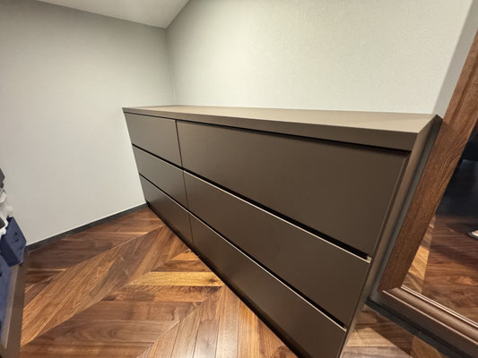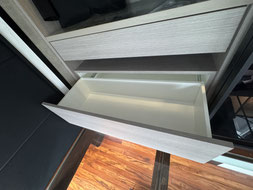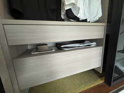 ・あると便利な引き出し収納です。見せたく無いものは、ここにしまい、魅せたいものは、ライトアップラックで展示する。